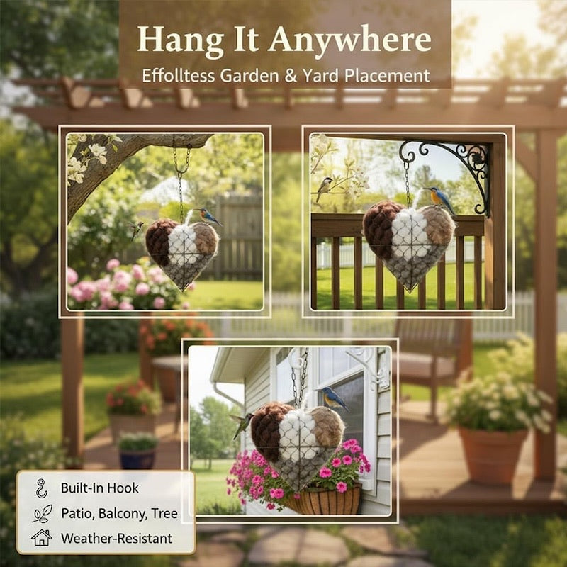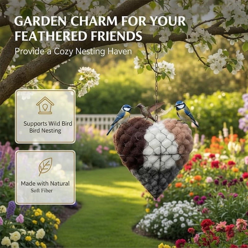 A natural alpaca fiber nesting heart for bird lovers — helps birds build warmer, safer nests while bringing more life and joy to your garden.
