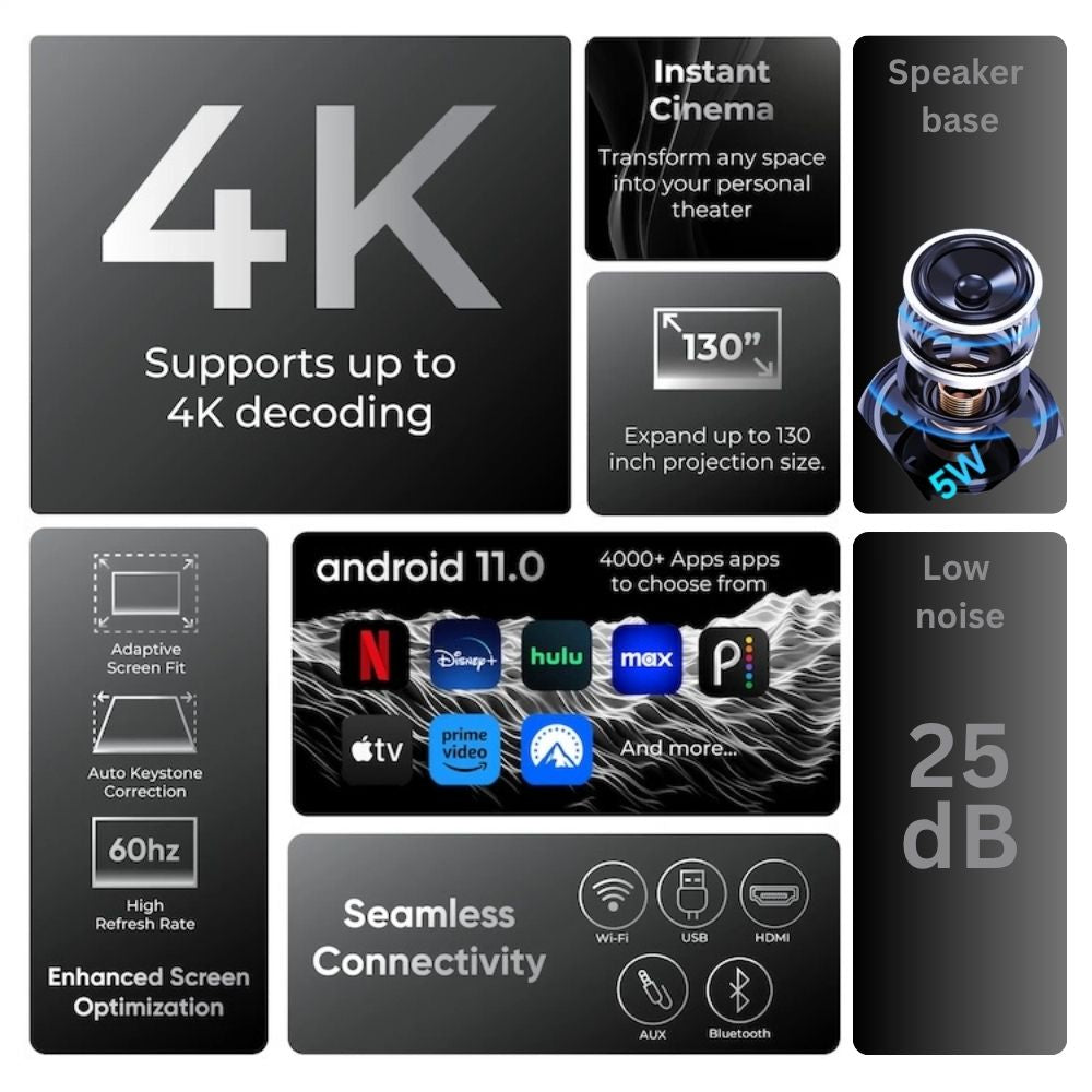 Projects up to 120 inches, turning any wall into an immersive movie screen — without needing a TV.
